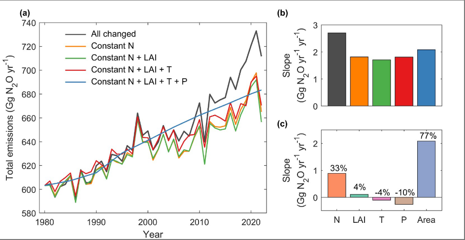 Figure 5. Attribution of Changes in Nitrous Oxide (N2O) Emissions from China’s Natural Soils (1980–2022).