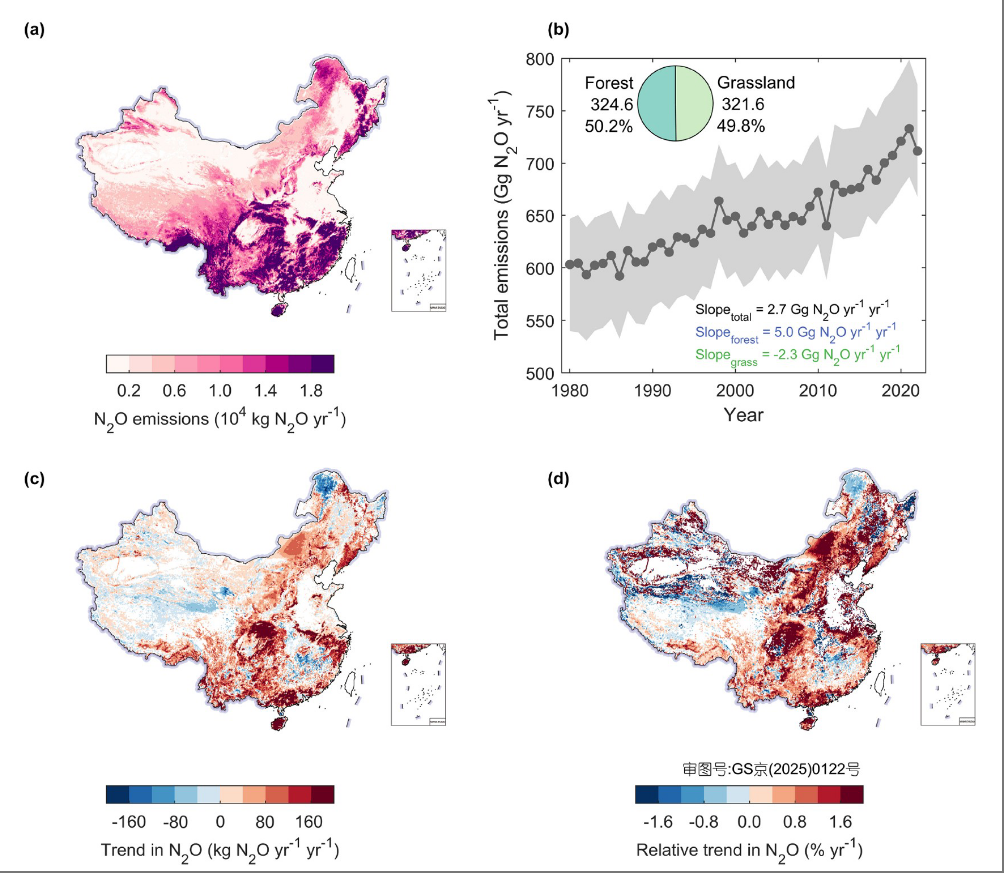 Hong S, Li Z, Tang M, Li F, Yao Y, Yan Y, He M, Wang X, Zeng H, Piao S. 2025. Magnitude, distribution and temporal trend of nitrous oxide emissions from China’s natural soils over 1980–2022. Science China Earth Sciences, 68(4): 1074–1085, https://doi.org/10.1007/s11430-024-1522-4