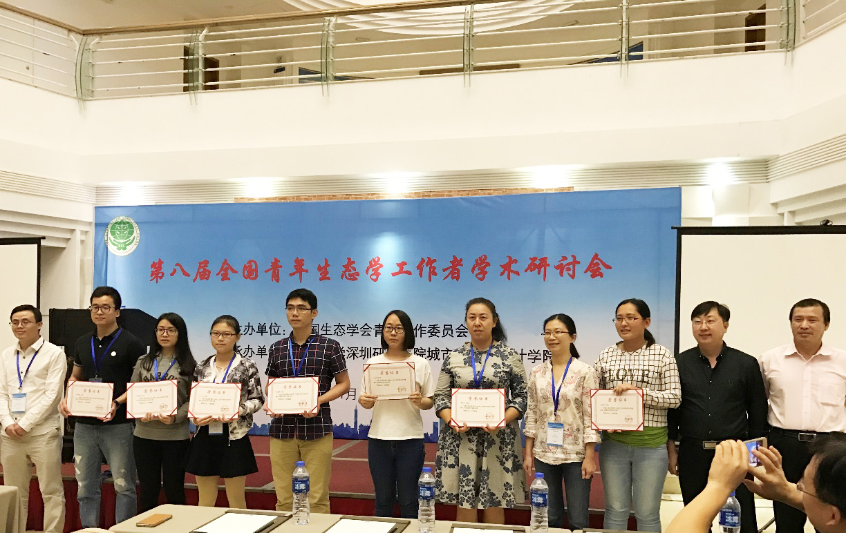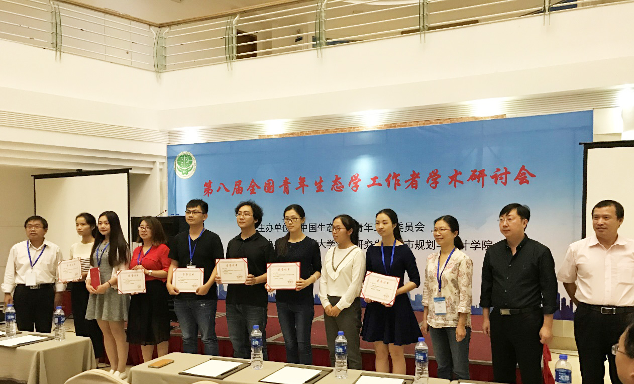 本届大会共计评选出8位中国生态学学会研究生科研创新奖,16位优秀学术报告奖和8位优秀学术墙报奖,公司博士生胡甜、硕士生张茜和贾靖雷荣获优秀学术报告奖,硕士生罗方焓荣获优秀学术墙报奖。
