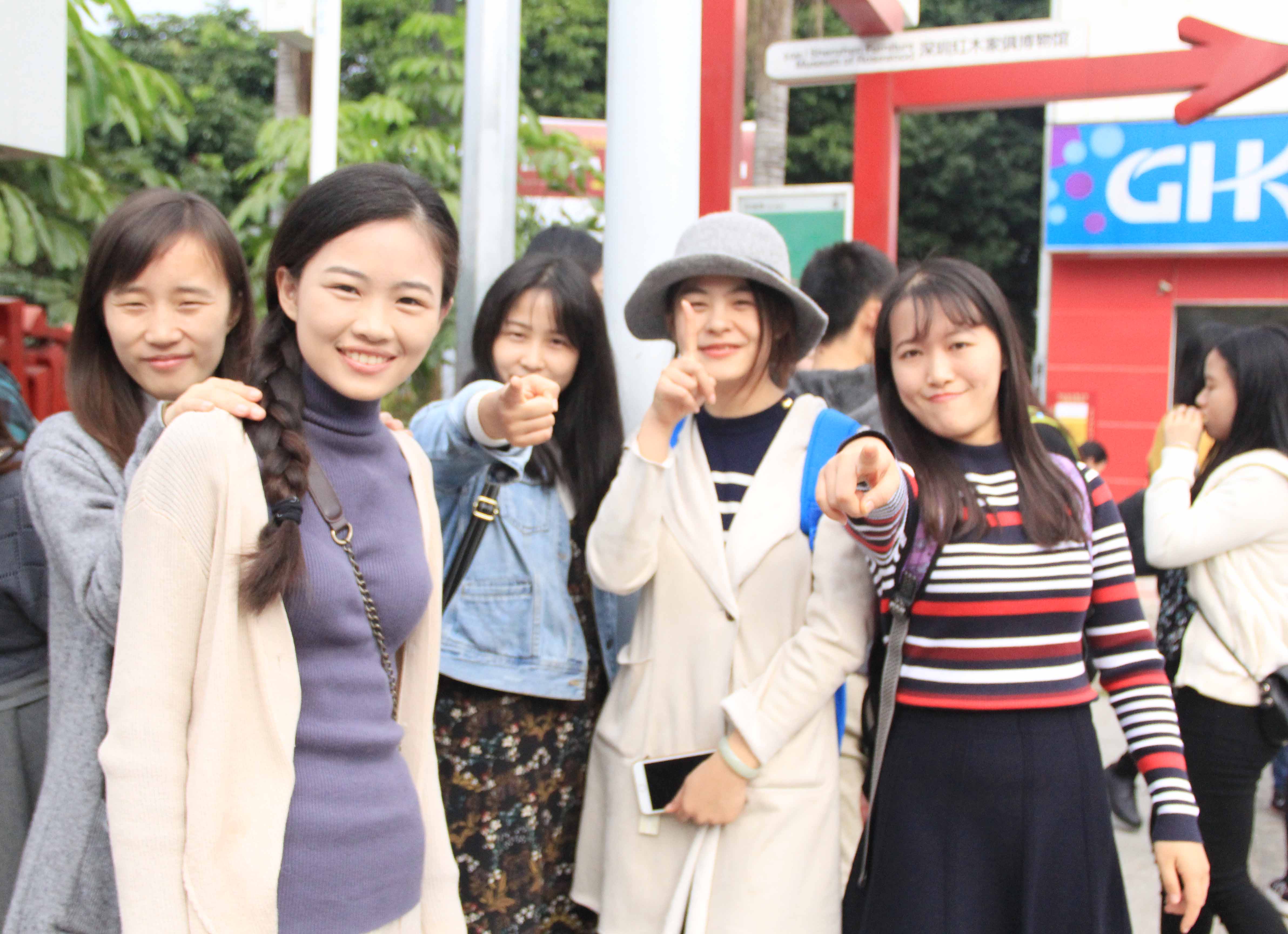四十分钟的长途跋涉,师生一行来到秋游第一站---观澜版画村:深巷老宅依山傍水而建,古色古香,亲切质朴。一下车,我们便闻到了一股岭南的古韵风味,信步闲庭,游历观赏了百年客家村落,其独特的人文风情,感染着满眼的远古时光,感染着游客内心深处向往的世外桃源。徜徉在富有诗意、古色古香的韵味里,仿佛回到百年前,那斑驳的墙面,留下一年又一年的印记;穿梭于古典与现在的时空里,游走梅巷、菊巷、秋水巷;踏上陌路的青石板,品味古典斑驳的老屋,记载着那岁月的沧桑;青砖黑瓦,青苔绿墙,任凭风吹雨打,渲染着独特的客家建筑风格;看那飞檐居所,门前屋后,街巷路旁,点点新绿,点点嫣红,清新、古朴、幽远,让人遐思飞想;一口古井,泛着清冽的甘露,啜上一口,润嗓滋肺,沁人心脾。曲径的小巷,瞬间几百年的过往眼前流淌,顺着长满青苔的瓦楞,便轻轻滑落城市公司这些文艺青年的心房。