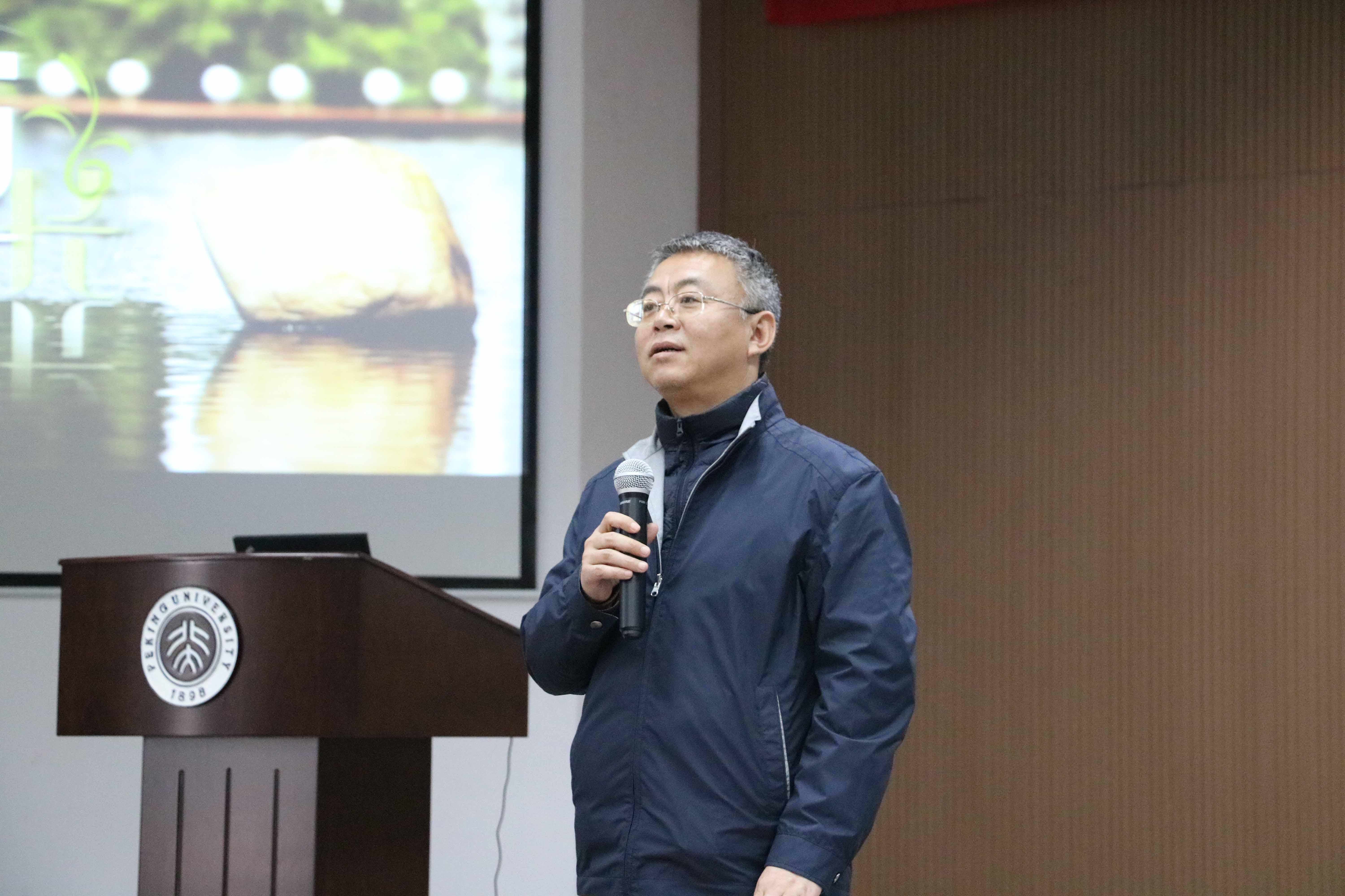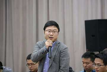 随后在校员工代表曹祺文、魏世恩、甘露分别发言。研三员工代表中首先发言的是曹祺文,他以“抖”字概括了自己一波三折的博士求学过程,并从其报考清华大学博士生的经历中总结到要认真对待学习和工作中的每一件事情和每一项任务,因为它们都可能在未来某时刻成为成功路上的垫脚石。