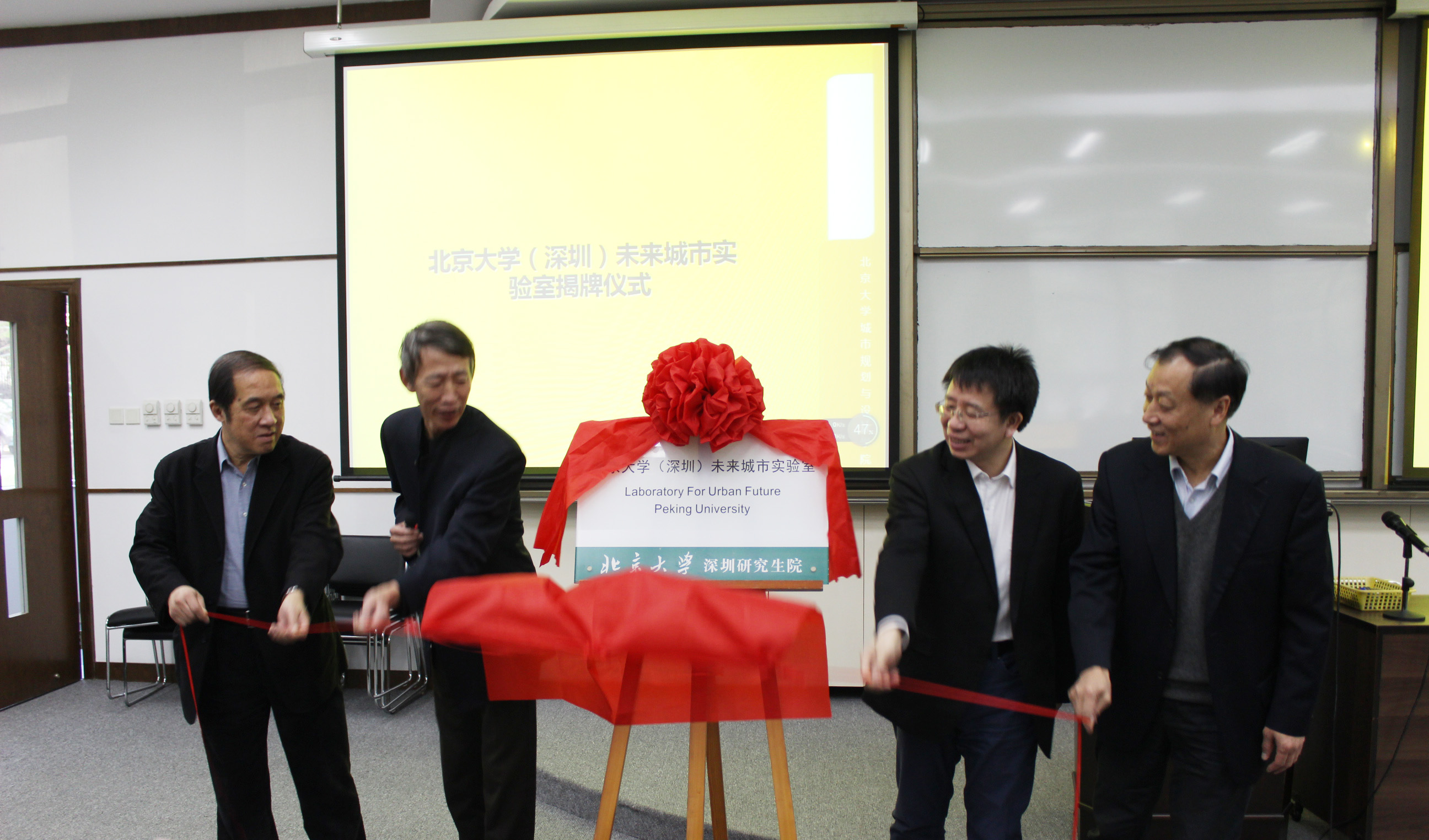 吕斌、李贵才、贺灿飞、冯长春(从左至右)四位教授为实验室揭牌