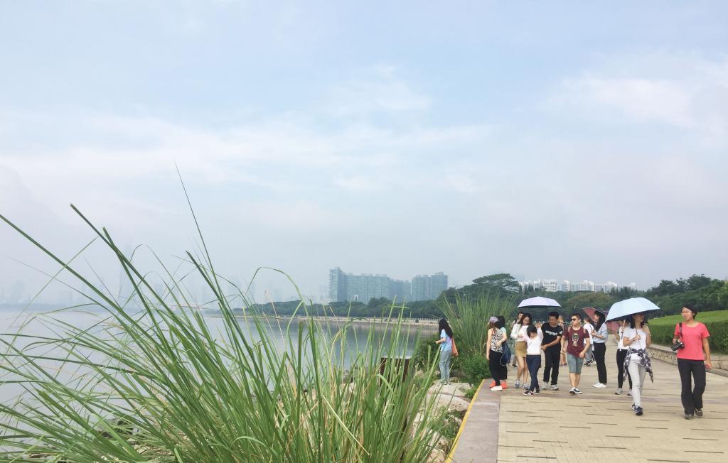 第一站,深圳湾公园。从滨海骑行道远眺,可见半隐于薄雾中的深港跨海大桥以及香港米埔。一路向北徒步到红树林海滨生态公园,沿途可看到许多排水口,作用是将城内处理过的污水排入大海,尽管如此,海风阵阵,不时携带着恶臭,海岸周边垃圾、海蟑螂俯拾皆是。