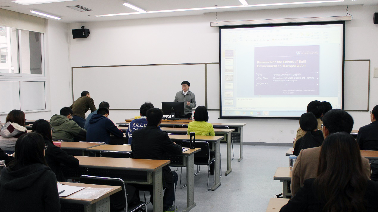 2016年3月12日下午三点,华盛顿大学城市设计与规划系教授沈青老师应公司杨家文教授之邀,在C栋102教室为南燕学子及校外学术同胞们带来主题为“建成环境对交通影响的研究”的讲座。首先,沈青老师对于“建成环境”、“交通”两个基本概念进行了解析。指出“建成环境”为人类的社会活动、经济活动而建设的人造场所,在空间尺度上变化幅度可以很大。建成环境包括物质性要素和制度性要素。物质性要素狭义上指土地利用,还可以加上别的,如基础设施等土地要素。制度性因素则包括法律、规则等,给物质空间增加了含义。“交通”实际上指的是人和货物在空间上的移动。当今的交通和通信是密不可分的,传统的物质运动变成了信息运动。沈青老师指出,研究“建成环境”和“交通”两者的关系可以帮助我们决定怎样建设建成环境,也有助于提升交通方面的产出。一方面使得交通可以有效地支持当今社会的经济和社会活动,同时能够保障社会的公平和环境的可持续。