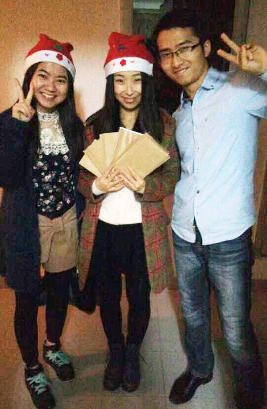 12月24日晚,班委男女互换为每位同学送出平安果,祝福大家平安夜快乐。圣诞夜,每位同学收到一张匿名贺卡。这之前,每位同学抽签随机分配自己贺卡赠予对象。为了神秘、有趣,男女生采取交换分配赠送的方式。新年贺卡上满载着大家的祝福,比如一个男生这样写到: “祝可爱的你圣诞、元旦、情人节、春节、端午……未来所有的节日都快快乐乐!”大家都认为匿名收到的贺卡是一份非常别致的新年礼物。
