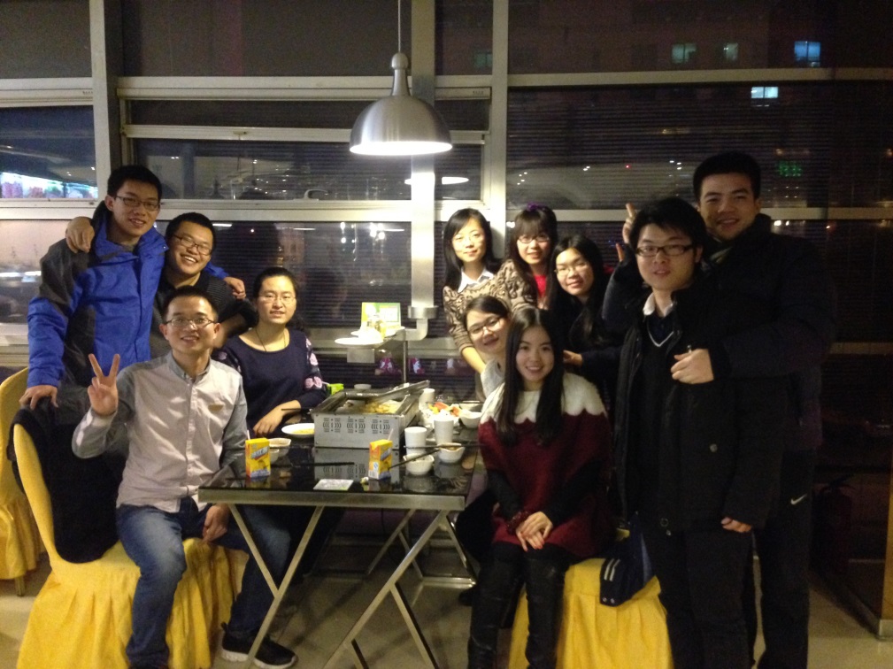 晚宴伊始,班长李佰恒对14年的班级工作进行了总结并提酒祝词,希望同学们在新的一年里增进交流、加强合作、增长本领,不断提高科研能力与专业技能,努力在各自领域中有所建树,同时也对远在南燕的同学们表达了美好的新年祝愿。