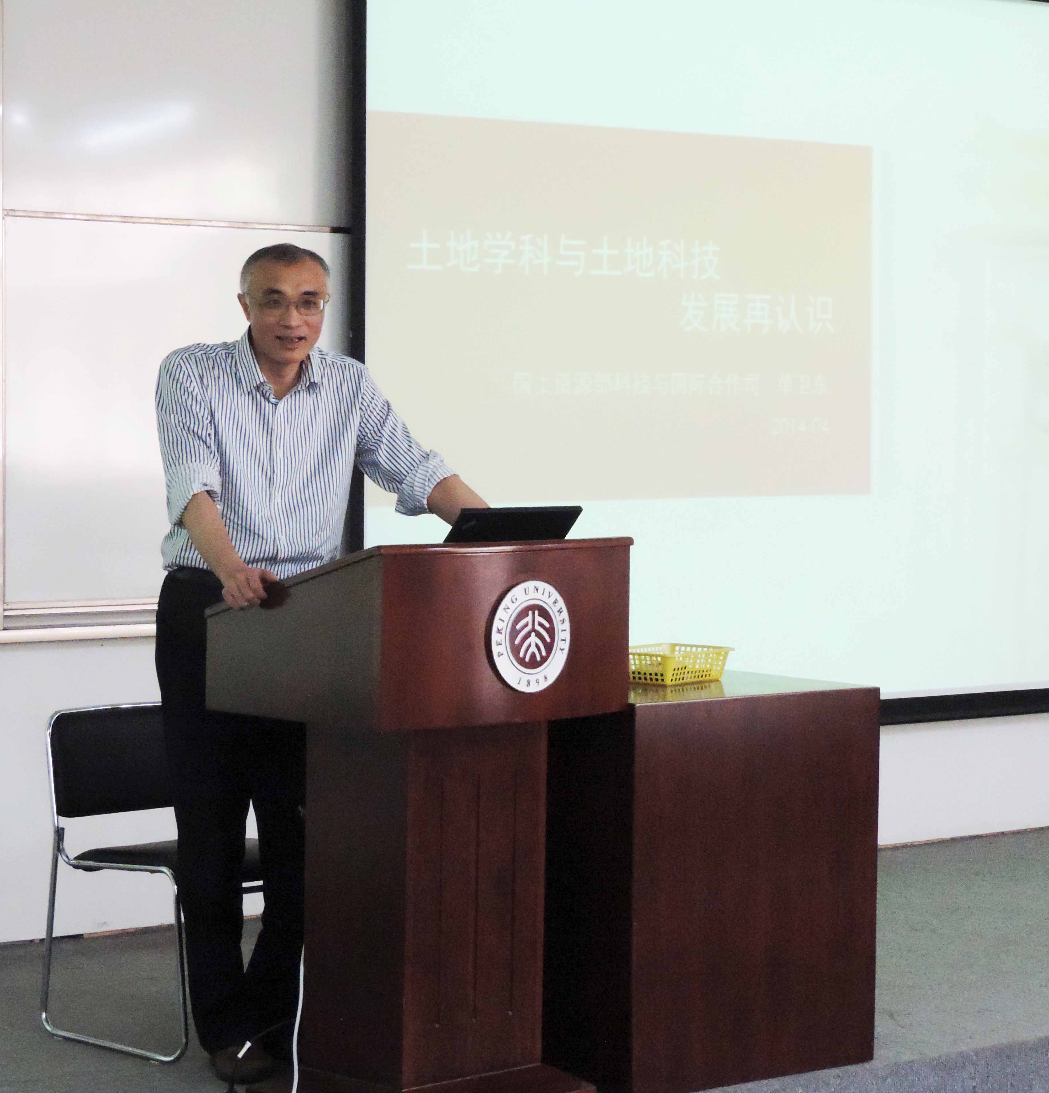 4月19日上午,国土资源部科技与国际合作司单卫东博士在C105为英国威廉希尔英文官网的师生带来了题为“土地学科与土地科技发展再认识”的精彩讲座。
