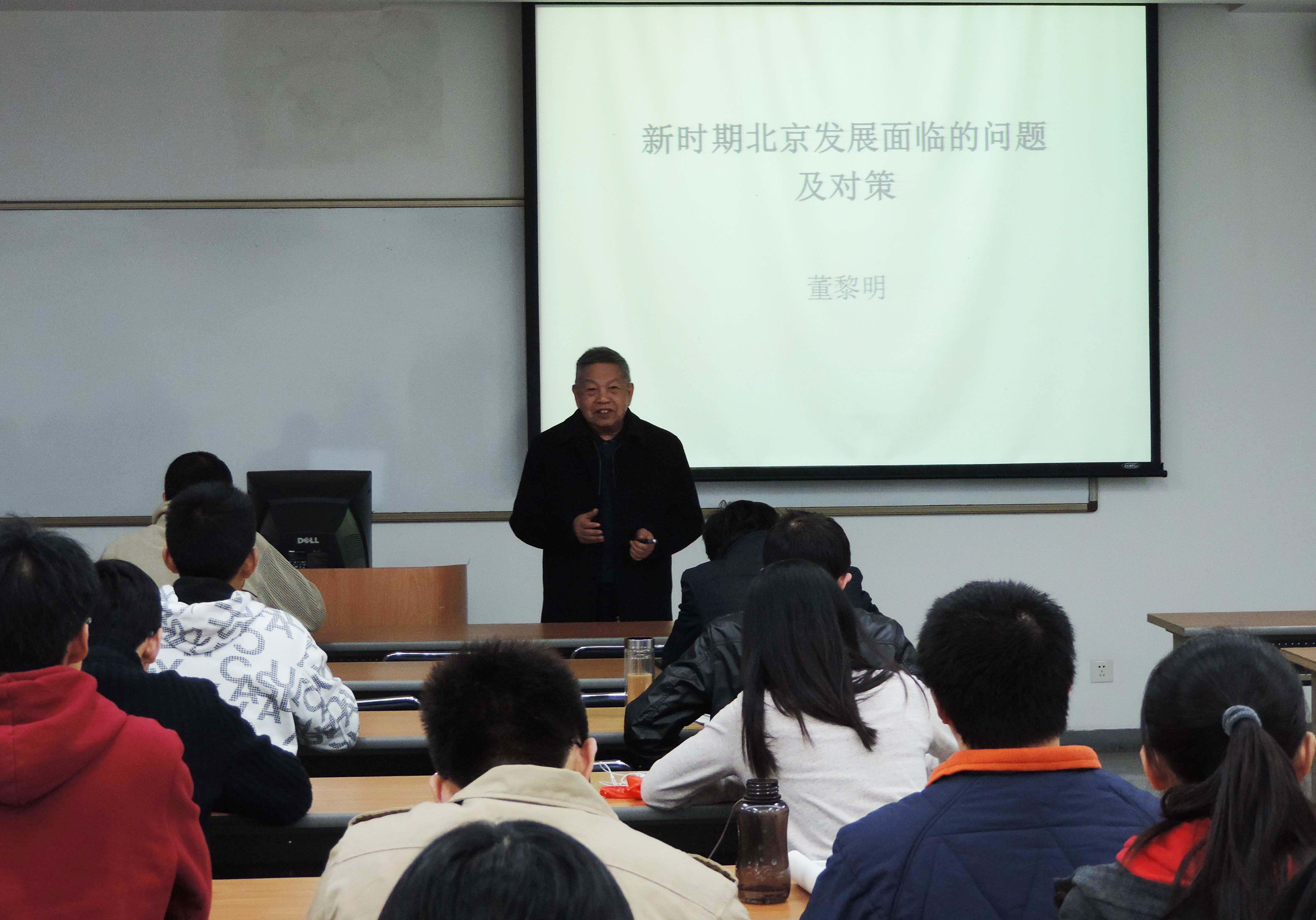 12月21日,应公司李贵才老师之邀,英国威廉希尔英文官网城环公司城市与区域规划系董黎明教授在C301为南燕学子们带来了一场主题为“新时期北京发展面临的问题及对策”的精彩讲座,公司杨家文教授主持本场讲座并对董先生的到来致以诚挚的欢迎与问候。