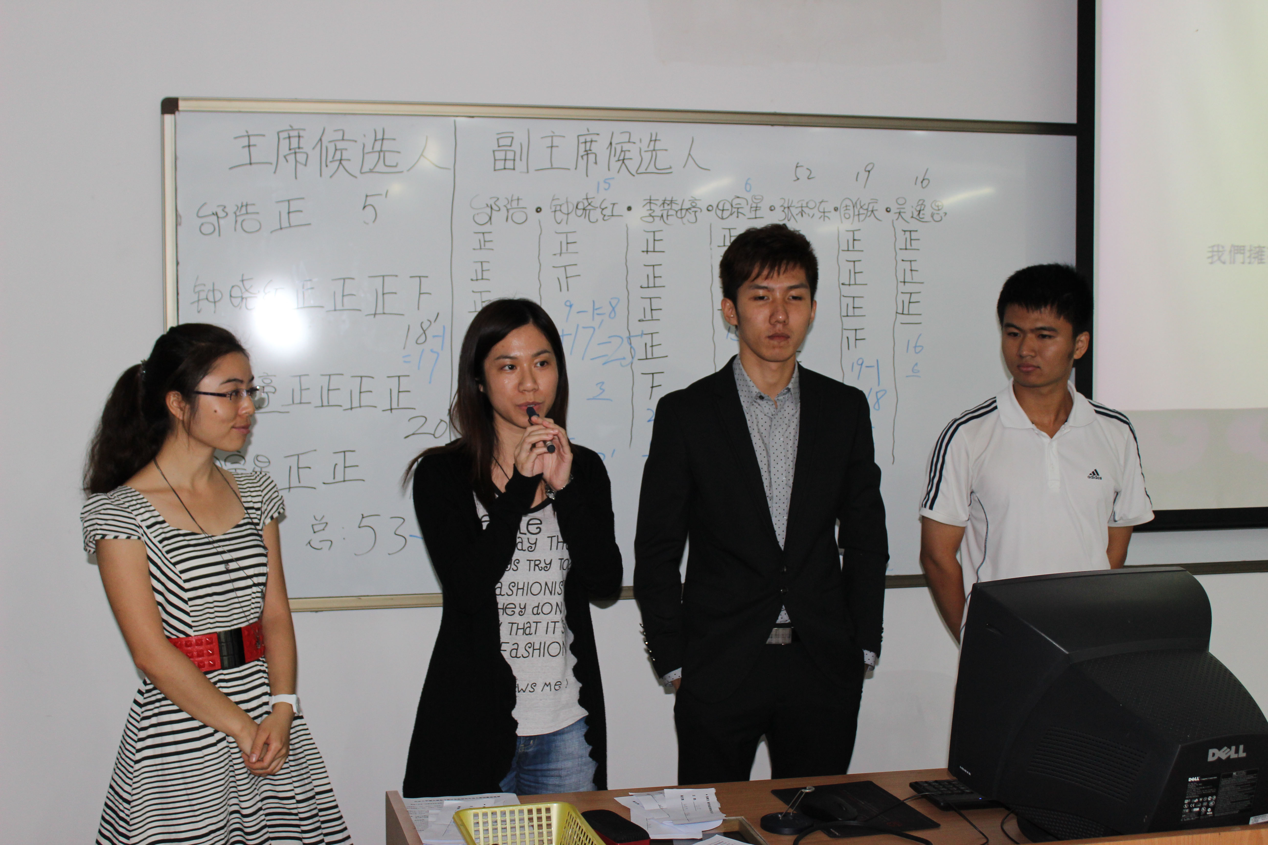 会议伊始,第三届研会副主席赫胜斌做了简单的述职报告。作为公司历史上最有活力的团队之一,第三届研会曾组织了多次丰富而有意义的活动,来丰富公司师生课余文化生活,如公司新年晚宴、毕业生座谈会、镜湖之夜文艺汇演、清远漂流和穿越东西涌等活动。报告最后,赫胜斌总结了第三届研会工作的收获与不足之处,并对第三届研会的优秀员工干部——赫胜彬、王玉国、刘轩宇、林倩、谢旦杏五位同学进行了表彰,公司领导阴劼老师、胡薇老师向获奖同学颁发了证书。