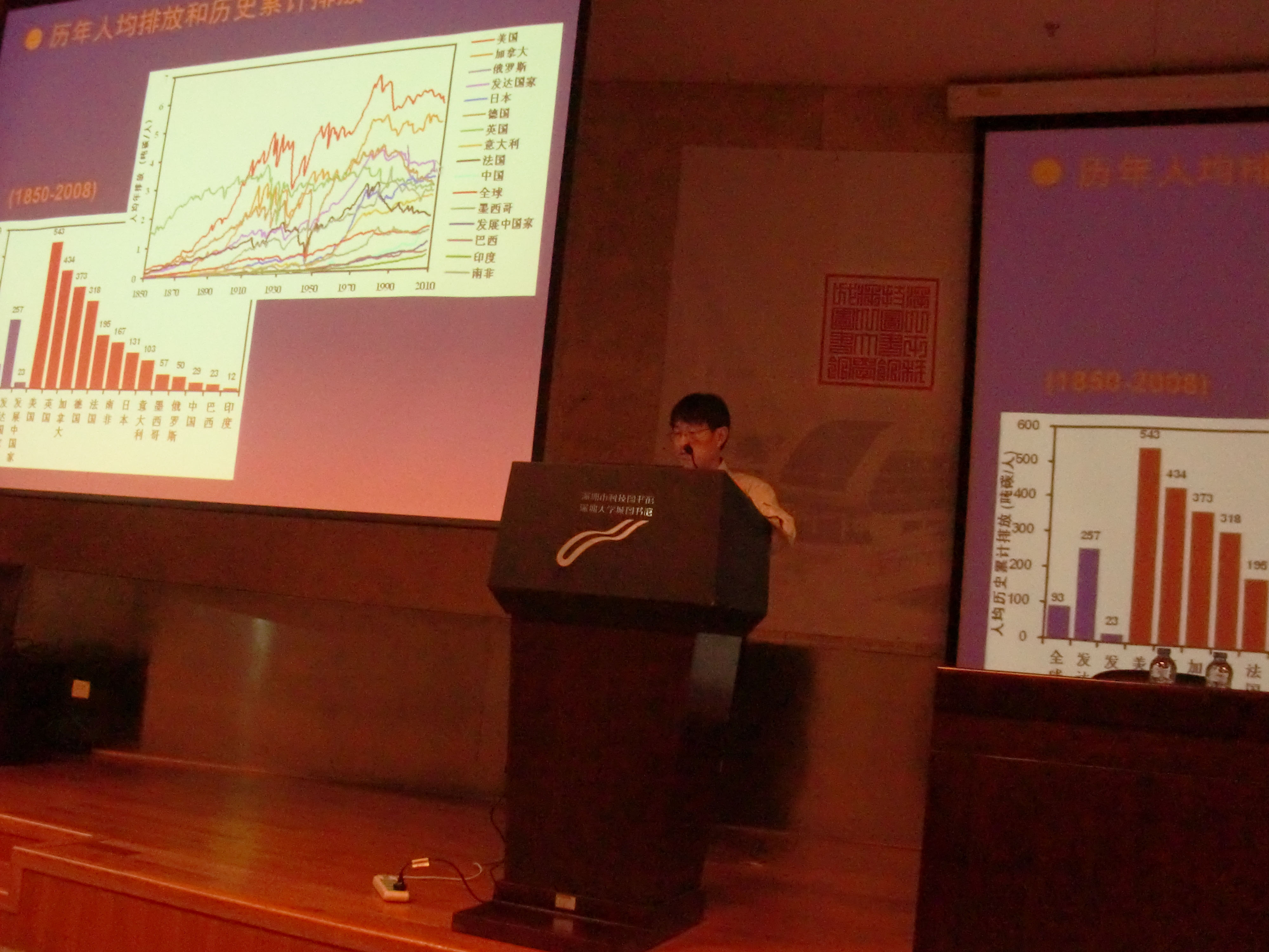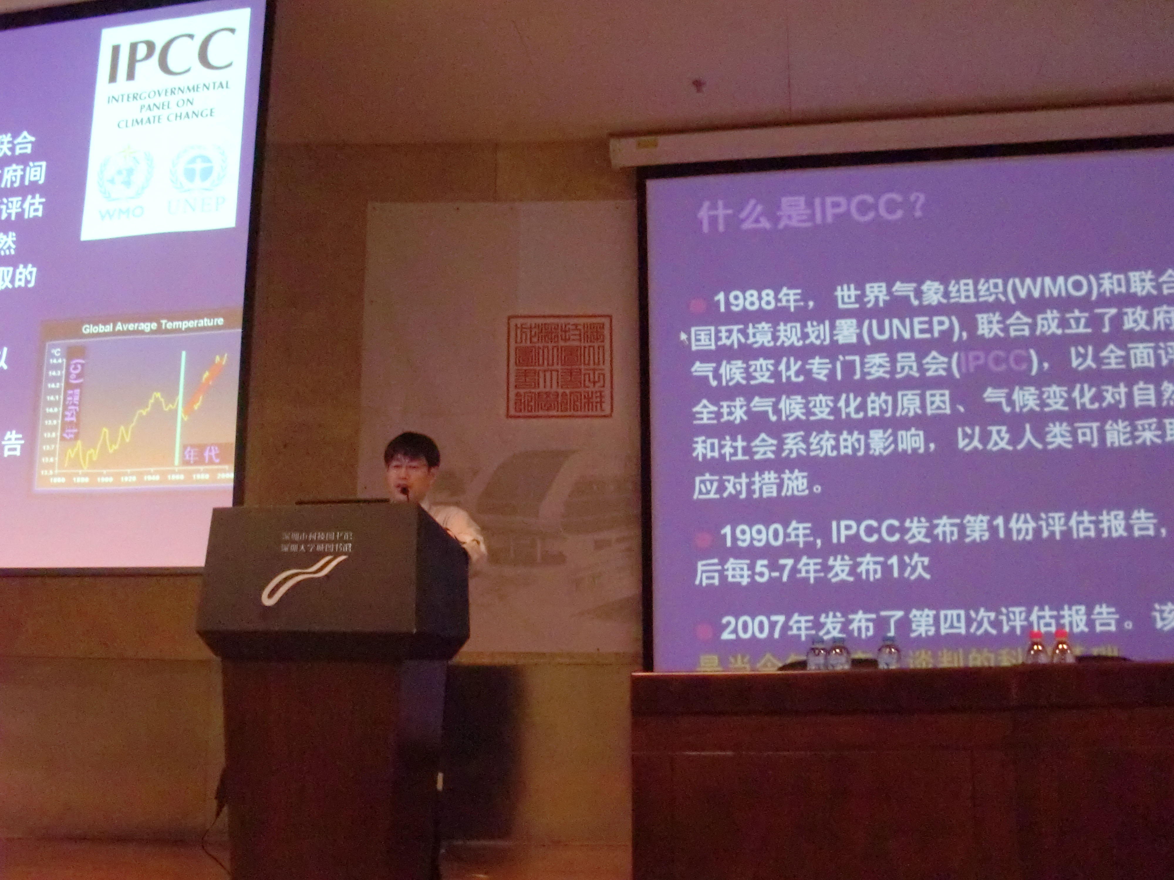 方精云院士首先从世界政治、气候变化以及相关组织概况等方面介绍背景知识,让同学们对全球变暖有了一个系统的认识。他就“气候门”、“冰川门”等热门话题做出客观纠正。方院士深入浅出地讲解了气候变化争议焦点、气候变暖的不确定性、中国和世界的碳排放比较与预测、以及生态系统的固碳作用、碳汇与地球工程等方面的知识。最后,方院士详细分析了中国关于碳排放与国外谈判博弈的案例。