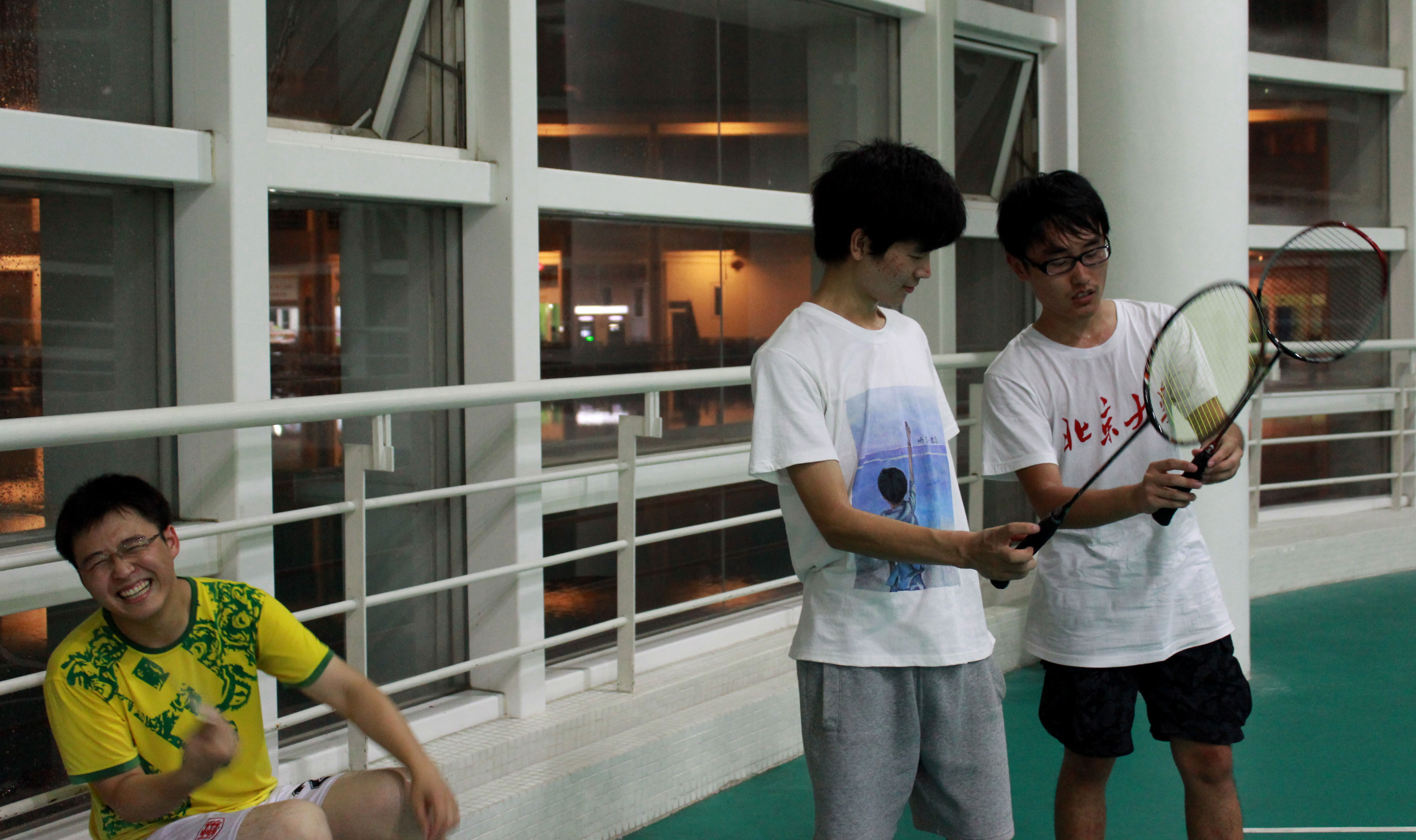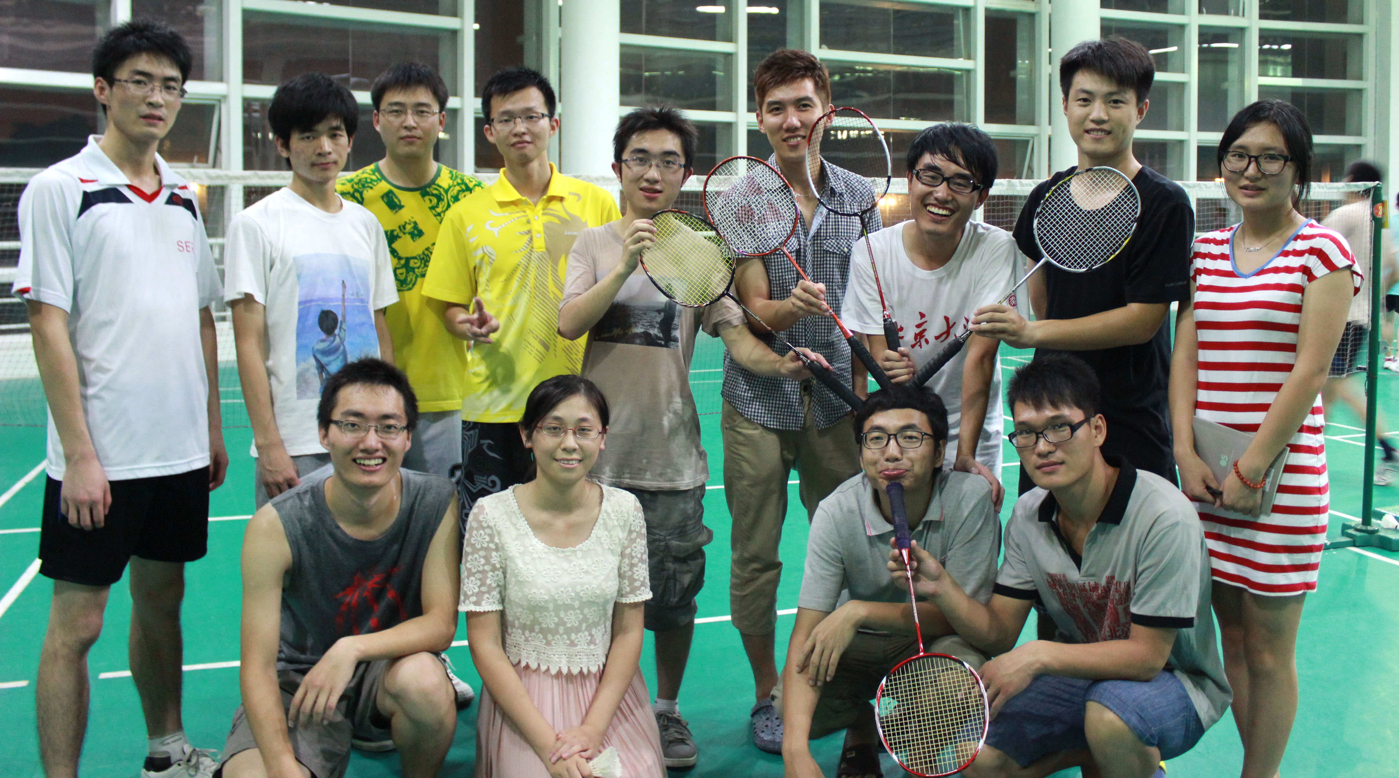 在众多运动团体中,规模最大、参与人数最多的要数羽毛球队。开学没多久,公司的新生张剑锋、李文钢、秦维、王乾、李翔、杨波、田宗星、王蔚等同学就组织了三次羽毛球活动。这些同学来自城市与区域规划班四个不同的方向。他们起初并不熟悉,是羽毛球这项共同的兴趣爱好使他们走到了一起,从陌生到熟稔,从素不相识到配合默契。他们中,有些同学练球多年,有些同学却没有一点基础,但他们却有一个共同的信念,那就是“以球会友,以诚相待”。正因为坚持这个信念,他们互相帮助,共同提高,在球场上用青春和汗水为南国燕园谱写着一个个扣人心弦的生动故事。