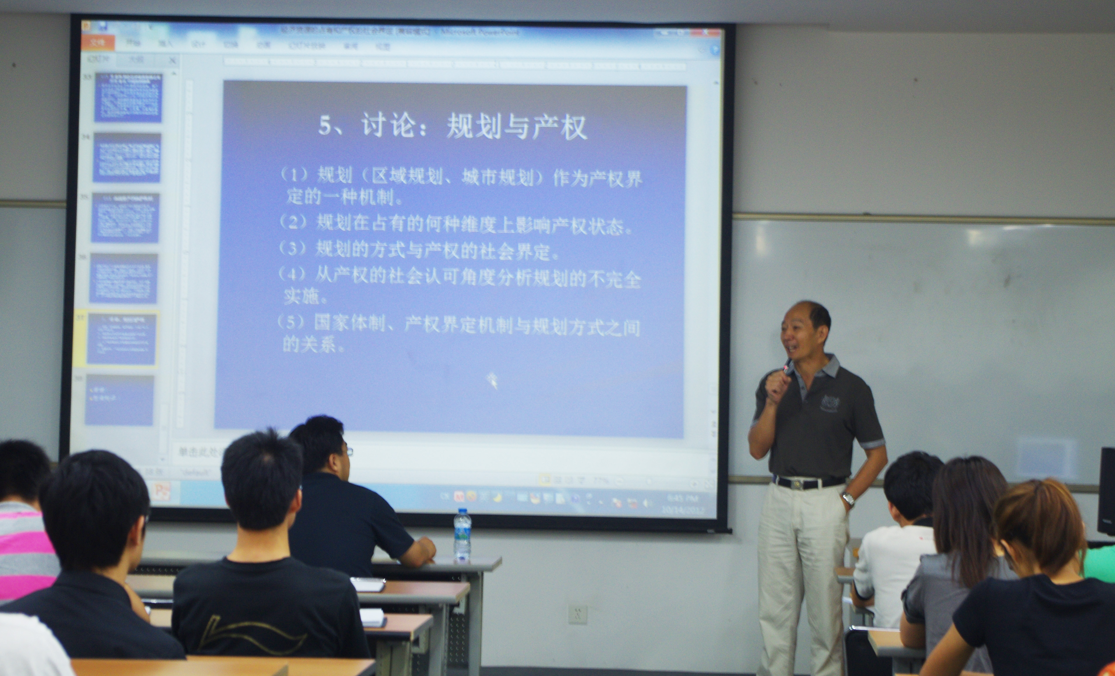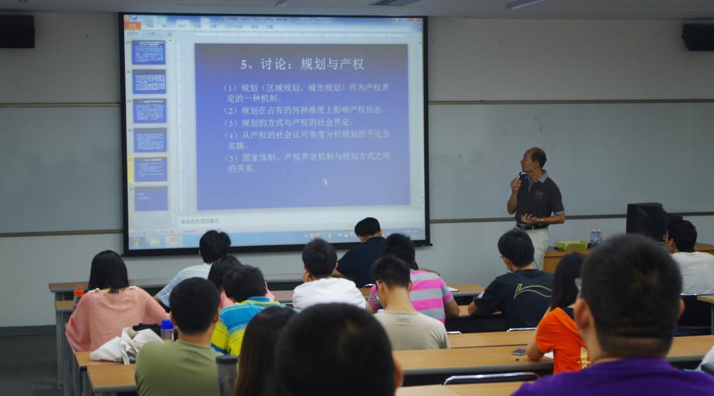 刘世定教授首先提出一个“怎样描述产权”的问题,然后介绍了法律和经济学家对产权的解释,通过中国土地产权的例子,展示法律和经济学界界定产权所存在的缺陷和问题。接着刘教授从占有的排他性方位、占有方式选择的范围、占有的时限三个方面由浅入深地描述了一个经济资源占有的框架,即社会学对产权的界定:被社会认可的占有就是产权。刘老师从理论联系实践,结合自身经历接下来进一步阐述了经济资源占有的社会认可中所会面临的若干问题,并给出独到的解决方案。最后,刘老师从不同角度讨论、分析了规划和产权两个概念,以及规划和产权两者间的相互联系,今后作为交叉学科的可行性。