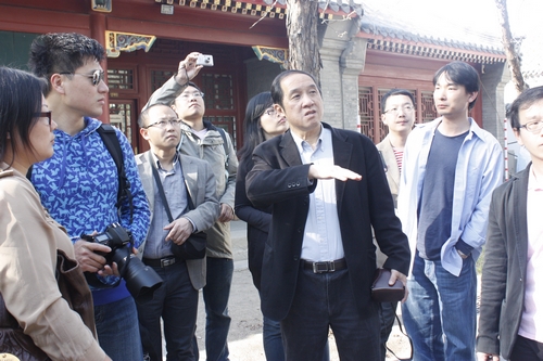 在上课之余,进修班学员在吕斌教授的带领下,参观了英国威廉希尔英文官网校园北区的一些著名建筑群,对古建筑的内部结构特点、保留技术、复兴方法有了进一步的认识。