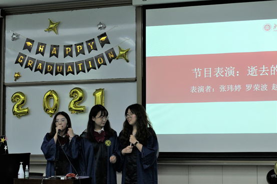 在游戏过后,由张玮婷、罗荣波和赵雅静三位毕业生带来了歌曲《逝去的歌》,伴随着全场鼓掌打拍,将现场观众带入了万千的感慨与回忆。