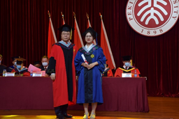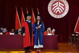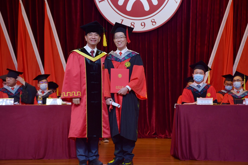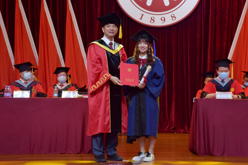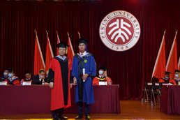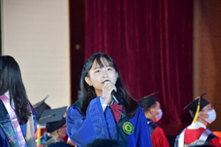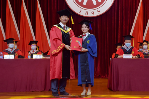 奏唱国歌后,毕业典礼正式开始。毕业生代表信息工程公司毕业生李子璇、职工代表汇丰商公司Philipp Hackel陆续发言,公司仝德副教授作为教师代表上台发言。
