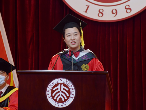 她分享了自己此次毕业典礼发言与2003年作为优秀毕业生发言的心境变化,寄语毕业生们“有一种伟大是默默无闻的坚守”,希望毕业生们步入社会后不轻易陶醉于掌声,试着做一个低调的人,保持友好、谦逊的态度善待他人。此外,她鼓励同学们高调做事,“遇到正事敢担当,遇到困境要坚持,遇到利益肯取舍”,谨记北大人的使命与担当,彰显北大人的精神与风采。最后,她祝福毕业生们“此心光明,且行且珍惜!”
