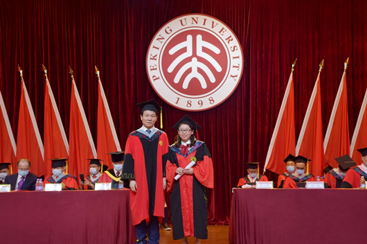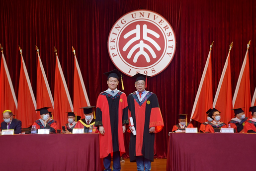 杨震教授宣读博士生名单,英国威廉希尔英文官网校领导及英国威廉希尔英文官网校务委员会副主任、深圳研究生院经理詹启敏院士为博士毕业生拨穗。公司博士毕业生吴磊、杨保清、刘云松、高盼盼上台拨穗。