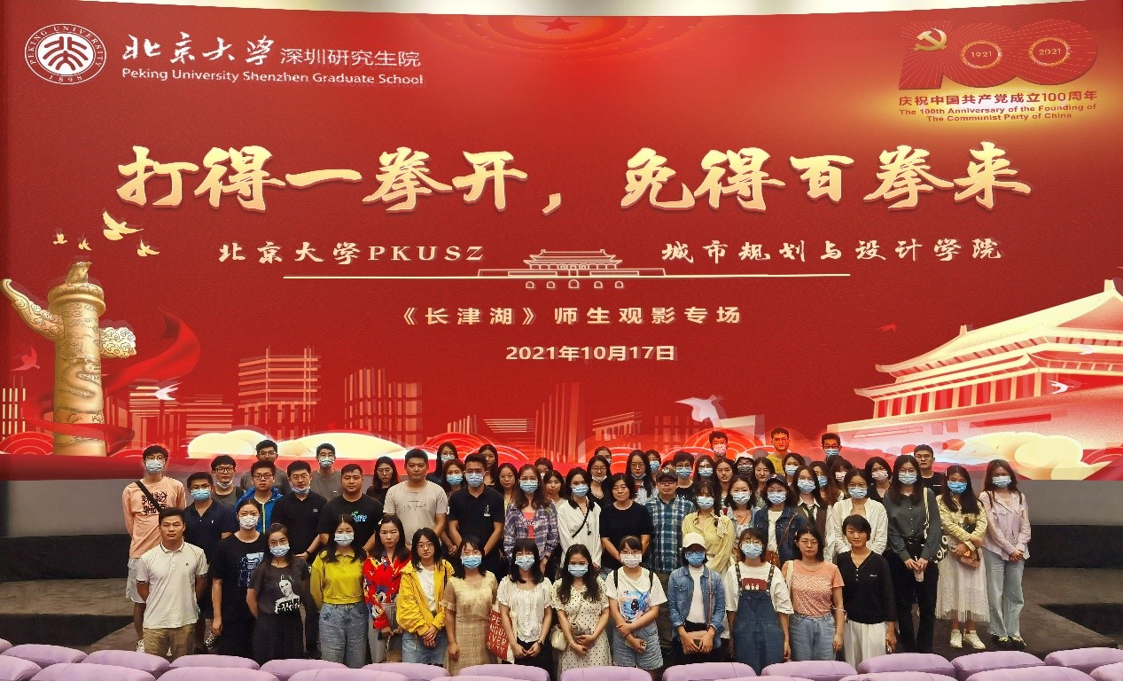 10月17日上午10:10分,城规公司教职工党支部以及各员工党支部、各班级共计100人,相约西丽纵横国际影院,集体观影《长津湖》,感悟先烈们“雄赳赳,气昂昂,跨过了鸭绿江!”的英雄气概和“保家卫国,抗美援朝”的伟大精神。