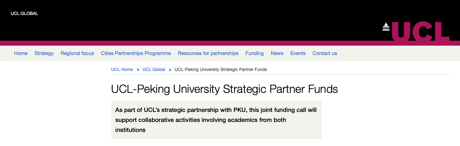 链接:https://www.ucl.ac.uk/global/ucl-peking-university-strategic-partner-funds