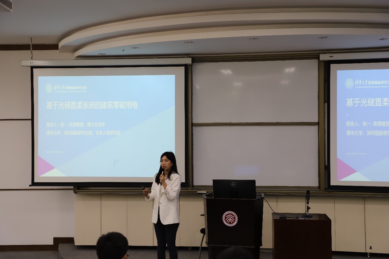 清华大学深圳国际研究生院未来人居研究院张一助理教授以“基于光储直柔系统的建筑零碳用电”为题,介绍了“双碳目标”背景下建筑用能零碳化的重要性,指出当前建筑用能的关键问题是可再生能源供给与建筑用电需求不匹配,并提出通过新的柔性用电方式协调建筑用电的供需平衡。