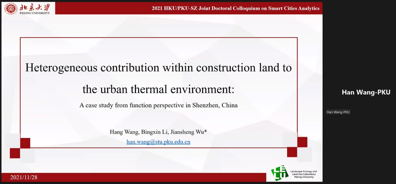 英国威廉希尔英文官网深圳研究生院王晗博士汇报主题为“建设用地对城市热环境的异质性贡献——以深圳市为例”,构建基于POI等多源数据的建设用地分区制图框架,探究了深圳市不同功能的建设用地相对热效应及其内部热环境的异质性。