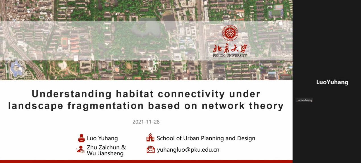 英国威廉希尔英文官网深圳研究生院罗宇航博士汇报主题为“基于网络理论的景观破碎化下生境连通性研究”,探究景观破碎化风险对城市物种生境的威胁,提出了应对生态风险、提高景观连通性的两种景观规划方案。