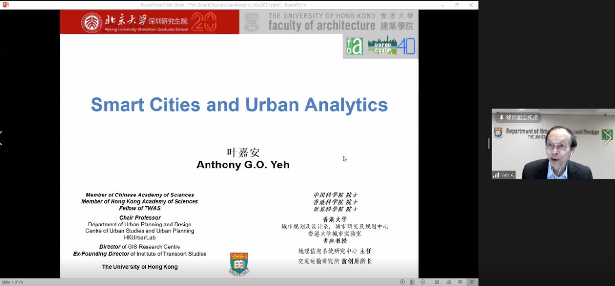 接着,香港大学叶嘉安院士以“智慧城市与城市分析”为题,为本次论坛作开幕主题讲座。叶院士从智慧城市的发展历程出发,介绍了智慧城市建设中的数据与技术,大数据的应用与分析,智慧城市规划与管理以及未来城市规划与发展的挑战。