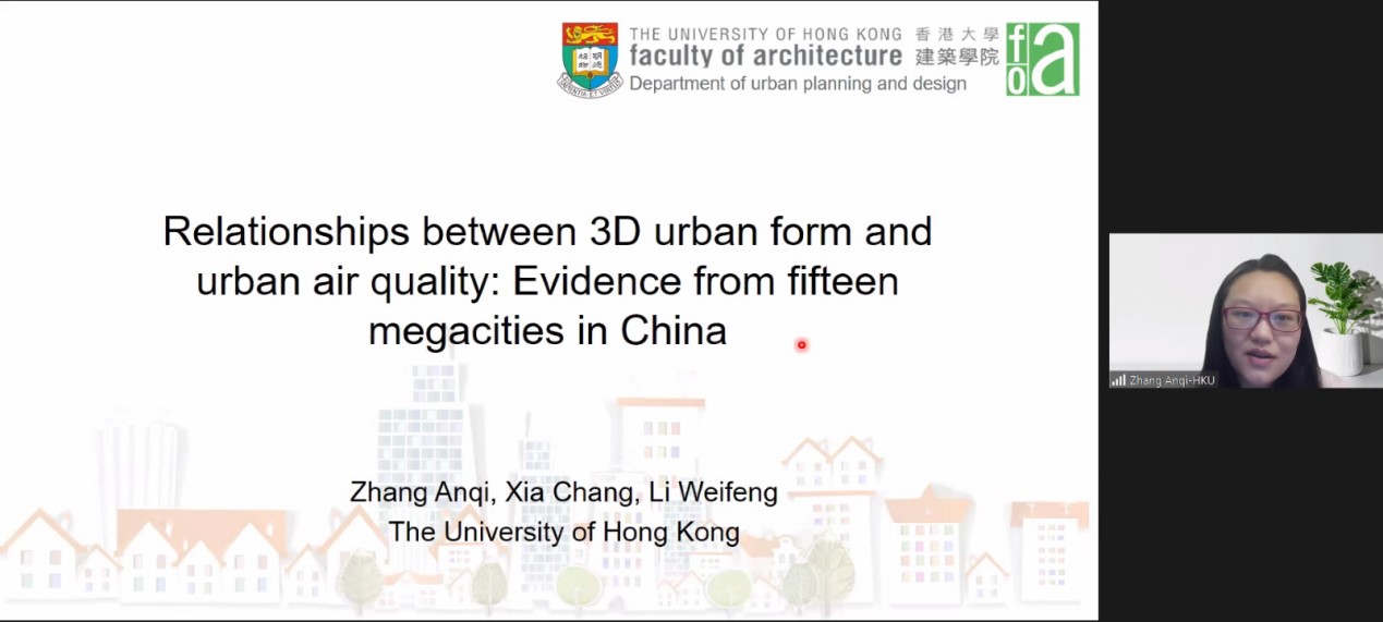 香港大学张安琪博士汇报主题为“三维城市形态与城市空气质量的关系:来自中国15个大城市的证据”,分析3D城市形态指标对空气质量的影响,并探究了空气监测点及周边的形态分类与空气污染的关系。