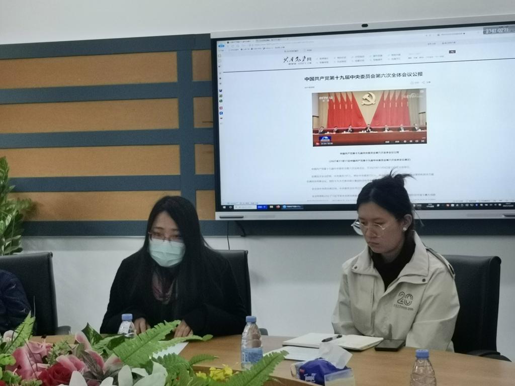 全体人员首先观看了32分钟时长的“中国共产党第十九届中央委员会第六次全体会议公报”。