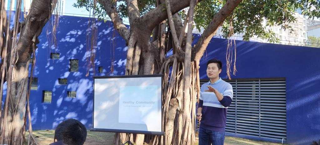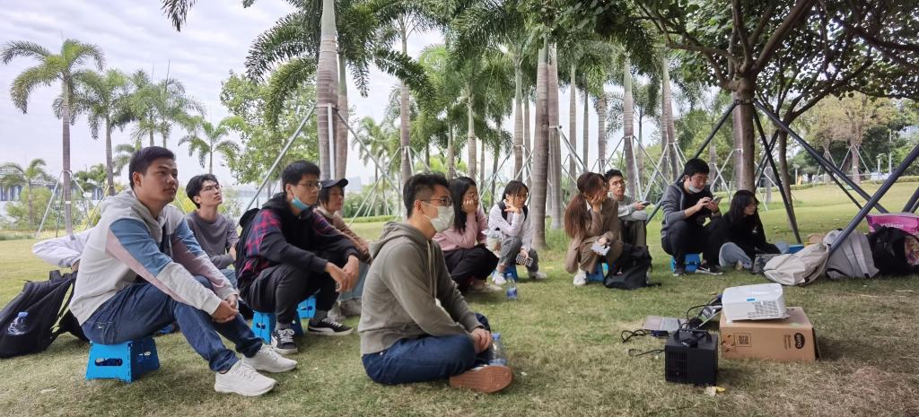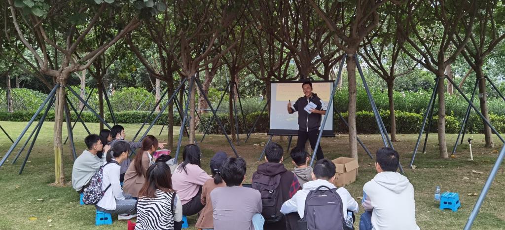 户外课堂由全球区域组精心筹备,为大家准备了早餐、水、零食,提前选定了授课场地,并将笔记本电脑、投影仪、幕布、小凳子等设备准备齐全。