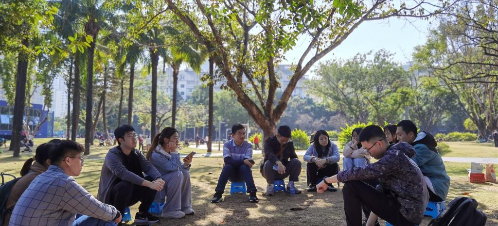 2021年11月17日星期四,按照计划,城规公司研究生课程“多尺度规划设计研究前沿”第一期户外课堂经过实地踏勘,征得同意,选址前海石公园。结合深港边界、前海开发等实践行动,讲解全球区域尺度的全球化、世界城市等科(有)学(趣)问题。