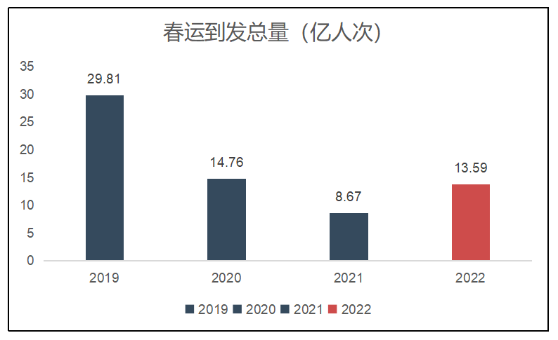 1、2022年春运期间到发总量预计为13.59亿人次,较2021年大幅增长。