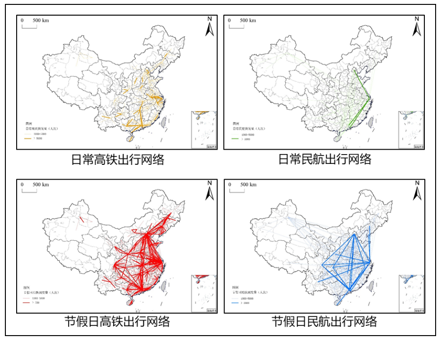 基于历史数据分析,高铁客流平均出行距离日常为308.53km,节假日为353.27km;民航客流平均出行距离日常为1298.4km,节假日为1305.7km。春运返乡和返城成为重要出行目的,出行距离高于日常。预计2022年春运民航和高铁日均客流量分别会上涨至平日的约1.8倍和1.6倍。春运期间,客运总量上高铁多于航空。但同平日客流相比,春运期间高铁客流变化相对平稳,客流增长率小于航空。