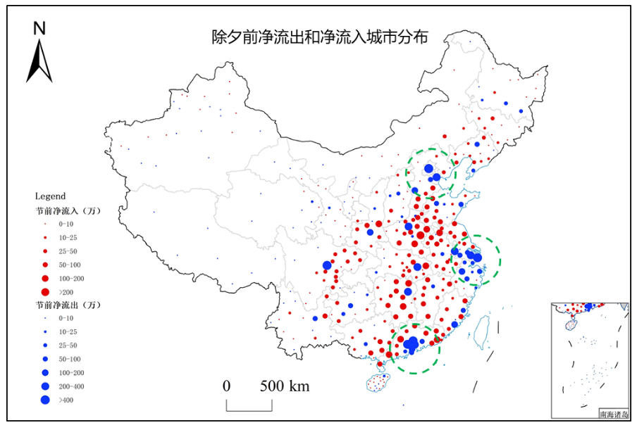 4、三大城市群是节前主要流出地区,净流入城市呈均匀分散格局