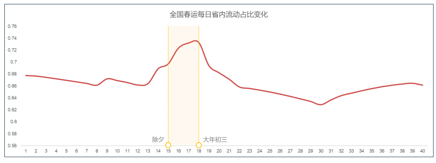 3、春节假期期间,以省会城市为中心的省内流动成为主流,除夕至大年初三省内客流量占比预计从66%提升至72%。