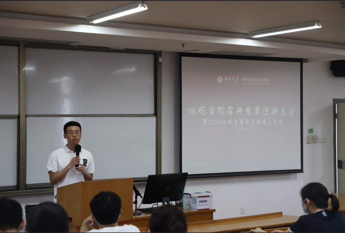 2022年8月25日下午3点,公司在C303教室召开公司党员迎新大会暨2022级硕士生党支部成立大会。教工支部书记仝德老师和副书记易哲星老师出席并主持了会议,共有23名新生党员参与本次大会。