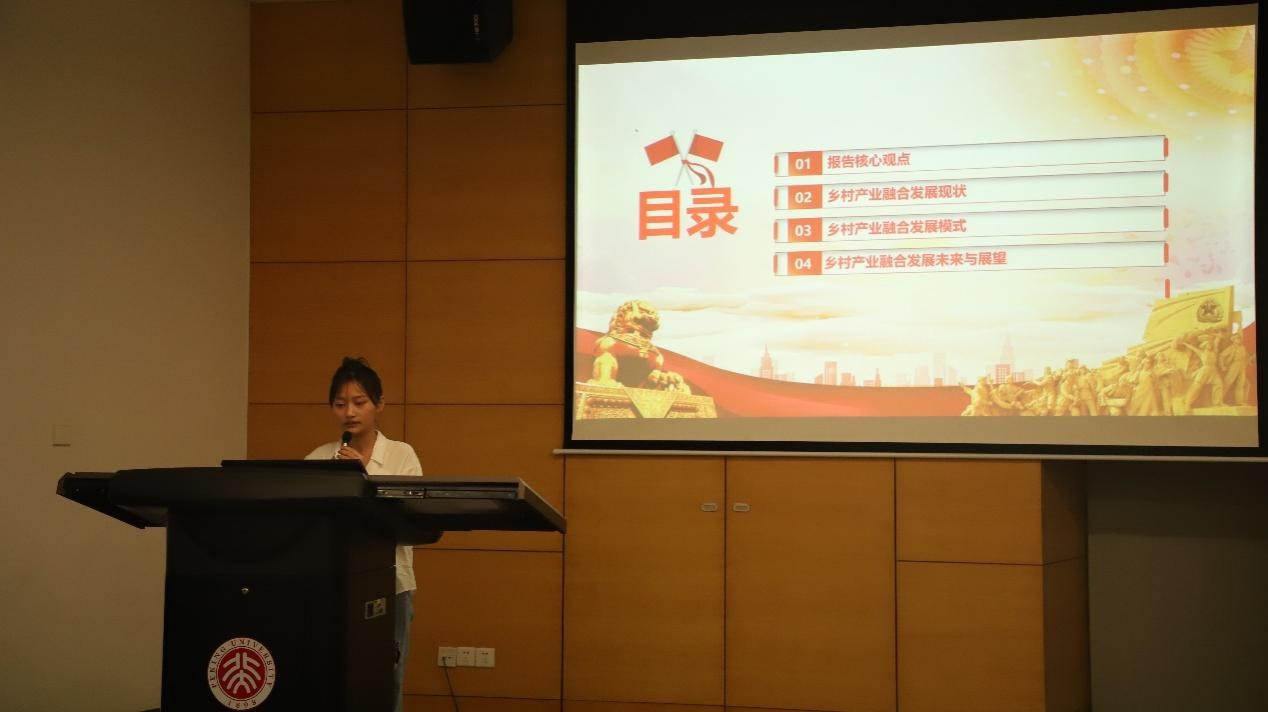 张政同学分享了政策性文件《中国乡村振兴产业融合报告(2022)》学习成果,从乡村产业的融合发展现状、发展模式、未来与展望等方面展开,带领大家学习报告核心观点。