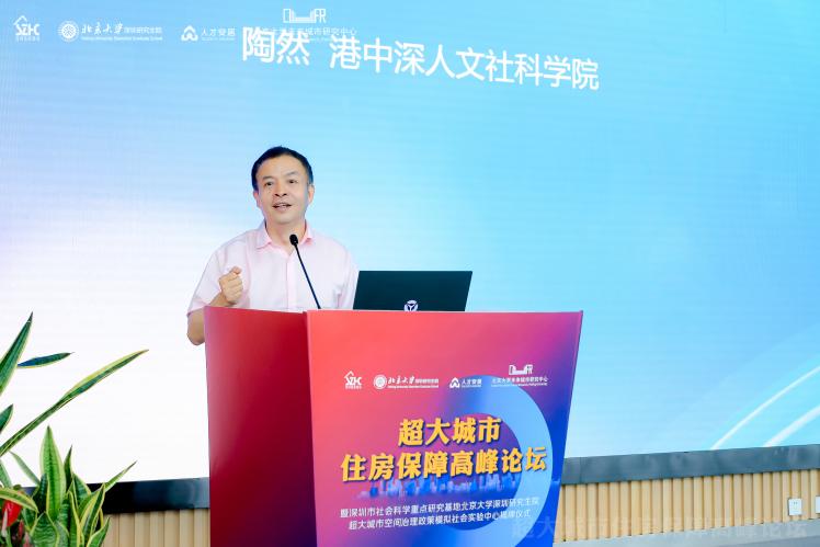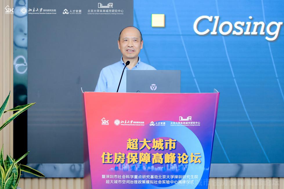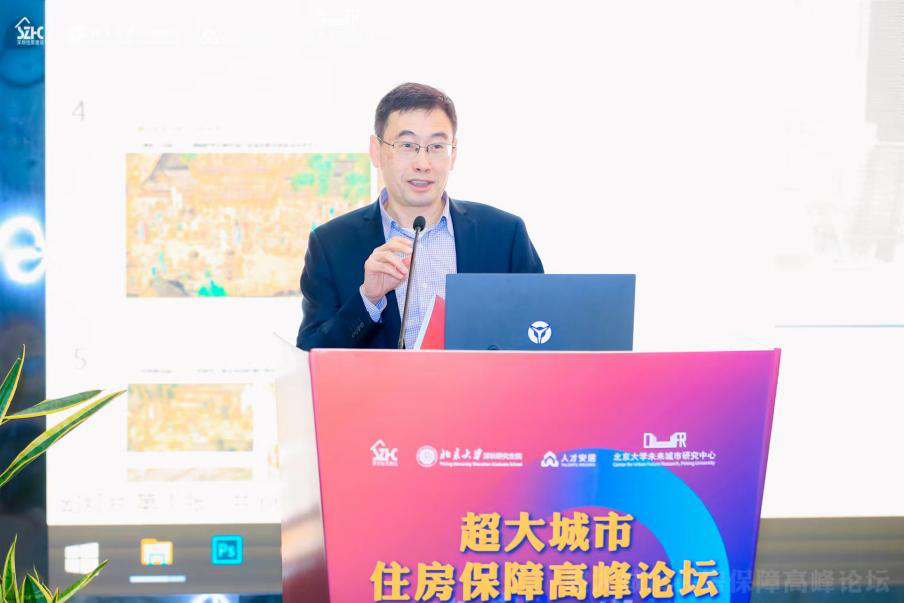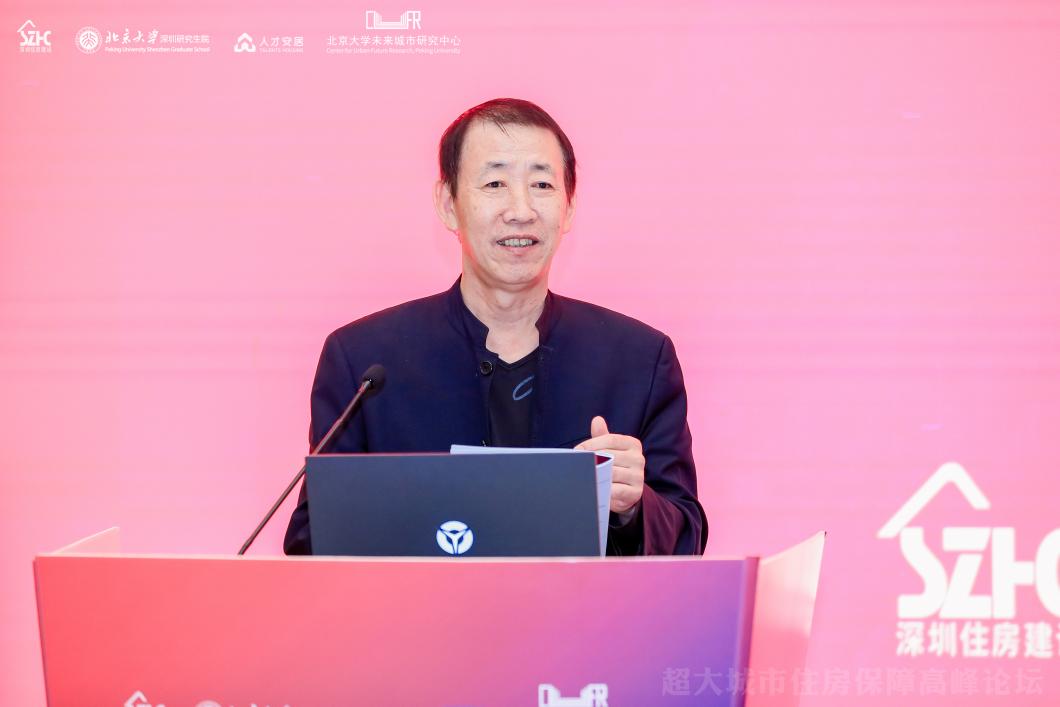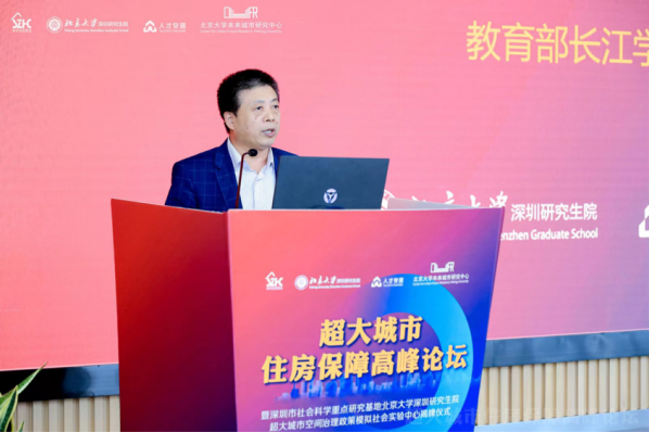 紧接着,来自政府与学界的四位特邀嘉宾分别致辞,提出了他们对超大城市住房保障问题的思考。中国房地产业协会名誉副会长、住房和城乡建设部房地产市场监管司原司长张其光从就业结构和人口结构两个角度提出关注超大城市住房保障的必要性,号召构建居民安居乐业的现代化治理体系。香港中文大学(深圳)理事、深圳市原副市长唐杰从城市居住功能、城中村历史文化、区域空间结构等多角度对深圳市面临的住房问题和住房保障思路提出了新见解。中国房地产估价师与房地产经纪人学会会长柴强针对我国超大城市住房问题的特殊性,指出平衡住房市场和住房保障的必要性。深圳市社科院(社科联)党组成员、副经理范伟军强调社科界将继续围绕城市发展与空间治理的理论问题,用理论思考回答时代问题。