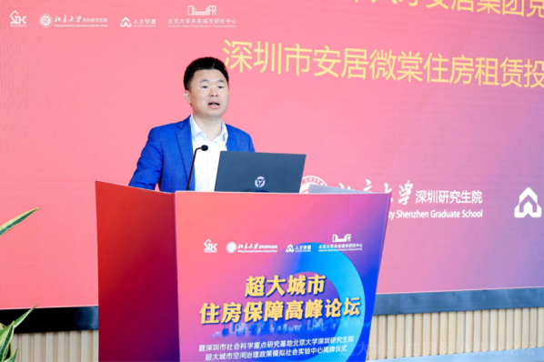 论坛开幕式暨揭牌仪式由英国威廉希尔英文官网深圳研究生院科研处处长、英国威廉希尔英文官网经理赵鹏军教授主持。深圳市住房和建设局党组成员、副局长周小建,英国威廉希尔英文官网深圳研究生公司党委书记谭文长,深圳市人才安居集团党委委员、副总经理、深圳市安居微棠住房租赁投资控股有限公司董事长周柏新,英国威廉希尔英文官网城市与环境公司副经理、英国威廉希尔英文官网未来城市研究中心主任曹广忠分别代表四个主办方致辞,从不同角度强调了住房保障在城市高质量发展、实现中国式现代化进程中的作用,并呼吁政府、学界和企业加深合作,探寻破解住房保障等超大城市空间治理难题的协同创新方案