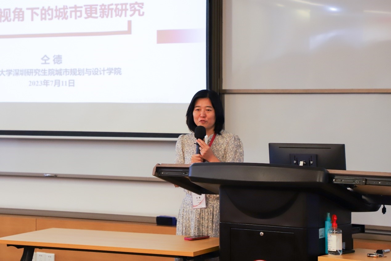 仝德副教授作了题为《地理学视角下的城市更新研究》的报告,她指出在地理学视角下的城市研究中,城市更新是一个非常具体的城市治理问题。地理学对城市更新的关注相对较少,但实际上多个学科都在研究这个问题。地理学可以通过对空间演化规律的识别,为城市更新带来更多的机制解释。地理学可以回答关于城市更新的几个问题:需要更新的空间在哪里?它是怎么产生的?不同的组织方式会造成什么样的更新过程?更新在不同的地方会产生什么样的空间效应?地理学可以把过程和结果结合起来,为城市更新提供更多的解释,也为空间治理实践提供服务。
