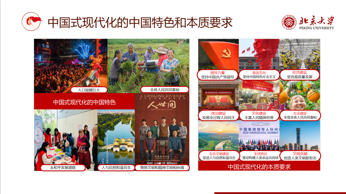 大会第二项,交流学习。在理论学习后,参会党员结合自身调研实习、科研学习经历,将“中国式现代化”的理论内涵与自身实践相结合,进行了精彩的分享。刘奔腾结合自己在川西实习的经历,分享了西部地区道路、供电等基础设施建设的情况,指出了中国式现代化对于改善该地区人民生活水平的必要性与重要性;徐珩讲述了自己在沂蒙山红色景区调研的经历,认为在传承中国式现代化“红色基因”的过程中,可以采用更加新颖、具有创新性的形式;吴欣妮结合参观侵华日军南京大屠杀遇难者纪念馆的经历,强调了中国式现代化中“走和平发展之路”和铭记历史、珍爱和平的重要性;徐瑞璇则根据自己的社会调研经历,分享了山东烟台某村落在党支部带领下成立软枣猕猴桃种植合作社获得成功的案例,指出在未来科研实践中要继续结合中国实践、把论文写在中国大地上。