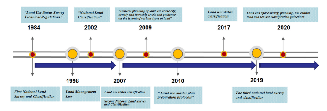 图 1. 几项具有代表性的土地利用和分类政策的时间表