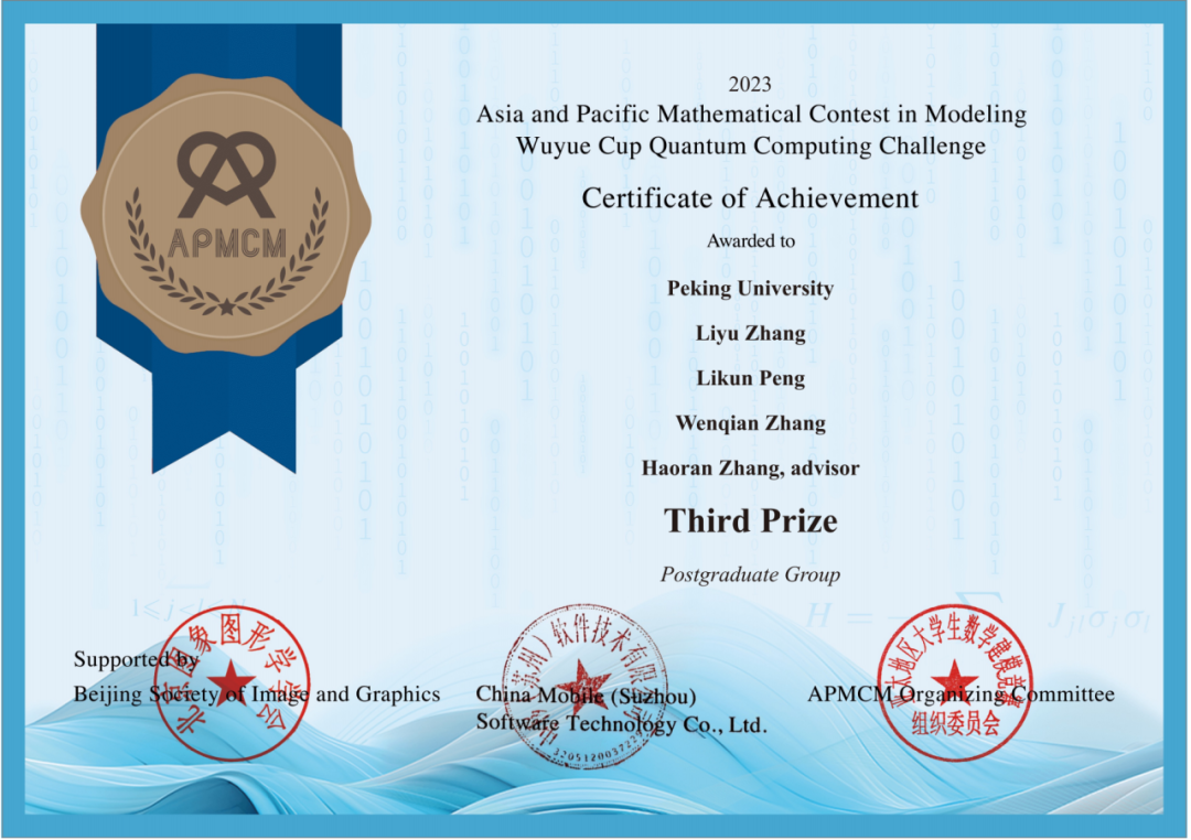 这次获奖是对我们在数学建模和量子计算领域努力的认可,感谢团队的协作,期待未来更多突破。