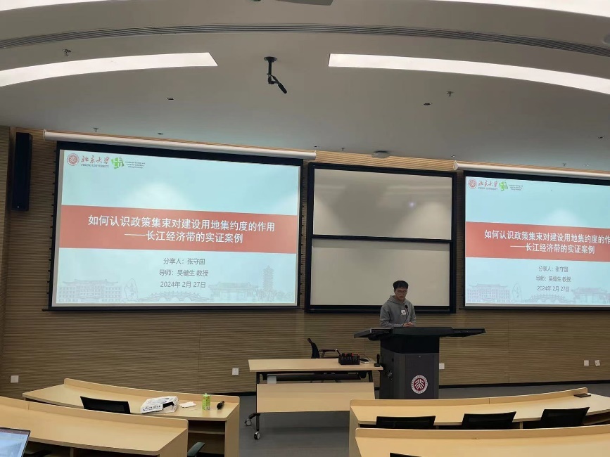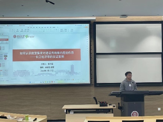 张守国博士生汇报的题目是“如何认识政策集束对建设用地集约度的作用——长江经济带的实证案例”。政府干预措施的合理性需要得到充分认识,探索节约集约政策集束的有效性是本研究的核心目的。综合考虑研究区集约背景、建设用地集约度的发展模式和政策集束的分化,本文以长江经济带为研究对象。该研究首先充分梳理了政策集束的演变特征;其次,基于遥感观测数据,以政策集束形成节点为中断点构建ITS模型量化了政府干预的有效程度;最后将模型结果反馈回政策集束本身,形成效果与演化特征的有效联结。该研究为认识政策集束的作用提供了一种有效的研究框架,并且能为节约集约用地政策提供相应参考。