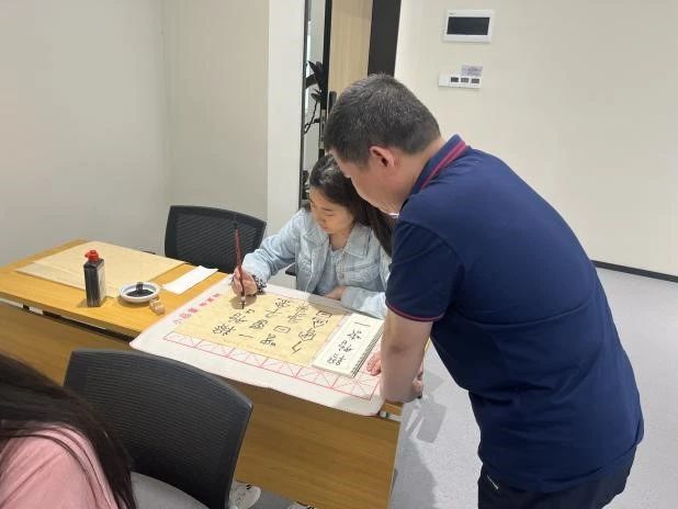 在老师讲解的基础上,活动的第二部分进入了实操环节。同学们纷纷拿起笔墨,按照老师的指导,开始练习三种不同的字体。老师耐心细致地逐个指导,纠正同学们的错误动作,使大家逐渐掌握了书法的基本技巧。在这个过程中,同学们不仅体验到了书法的魅力,也感受到了中华文化的深厚底蕴。
