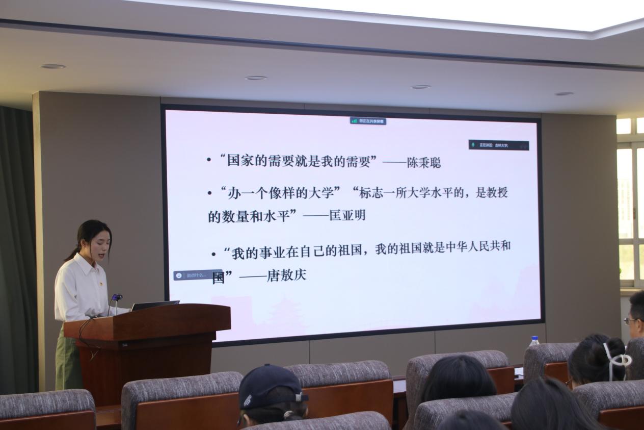 吉林大学哲学社会公司团委宣传部部长陈岩,围绕“北上精神”这一主题,带领大家共同回顾了先生们一路北上、扎根东北,为吉林大学、东北教育事业而呕心沥血、无悔奉献的璀璨岁月,并从听党号召、为国担当、扎根东北、艰苦奋斗和兴教育才五个方面,结合先生们以一生之力守北兴北的时光剪影与不朽光辉,深入阐释了北上精神的人文内核。