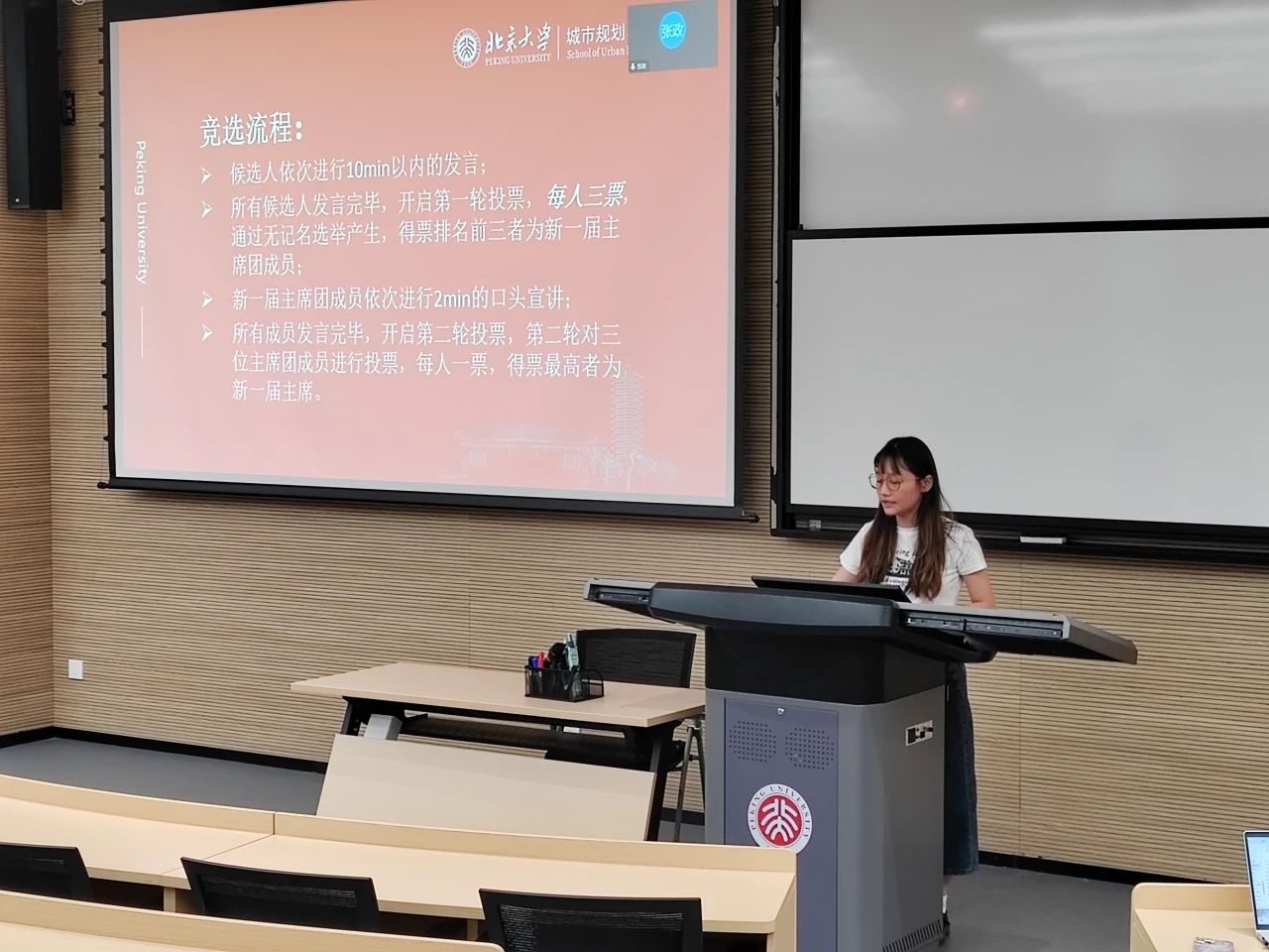 五位候选人分别进行竞选演讲,他们回顾了在城规研会一年间的工作成果,总结了自己获得的宝贵经验与成长,表达了继续在城规研会发光发热的强烈愿望。同时,结合各自的经历和独特视角,他们提出了从提升活动质量到增强组织凝聚力等多个方面的见解和创新设想,展望研会未来的发展方向,以期更好的为师生服务。