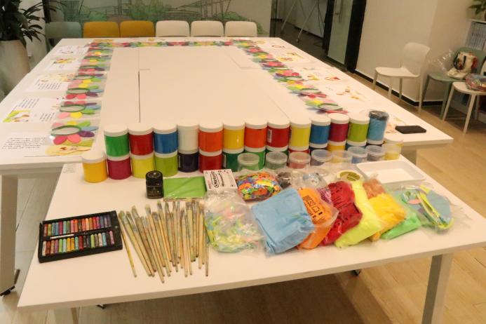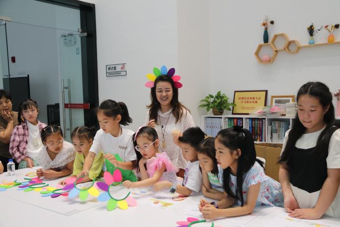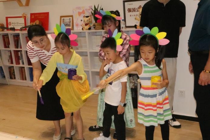 艺术作画环节在艺术家、家庭亲子教育指导师芳芳老师的带领下进行。老师和孩子们一起在大幅的画纸上挥洒色彩并开展活动,每个孩子的脸上都洋溢着专注和喜悦。这不仅是一次艺术创作的体验,更是一次心灵的交流,孩子们在画布上表达了他们对世界的感受和梦想。