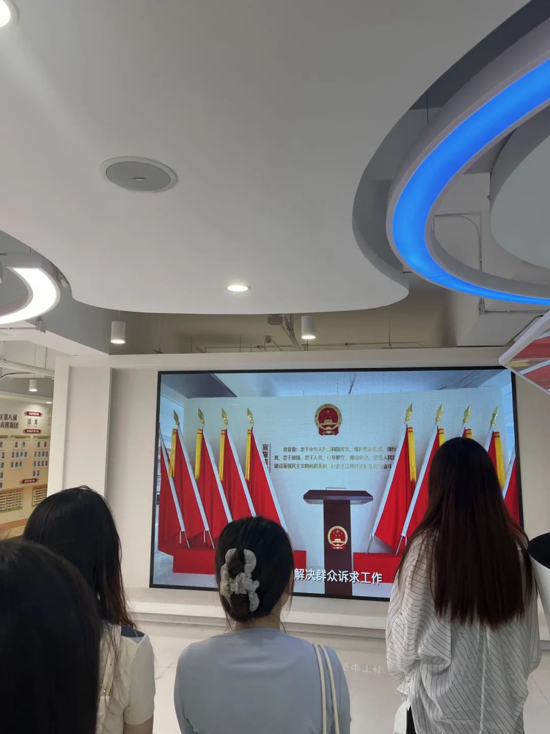 通过观看历史图片、文献资料和滑动展板,工作人员详细介绍人大工作的基本原则和代表的职责,帮助同学们深入了解人民代表大会制度的发展历程和重要性,让同学们对我国根本政治制度有了更加深刻的认识。