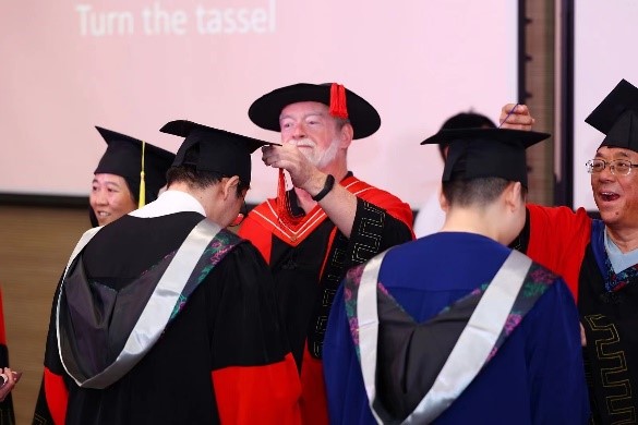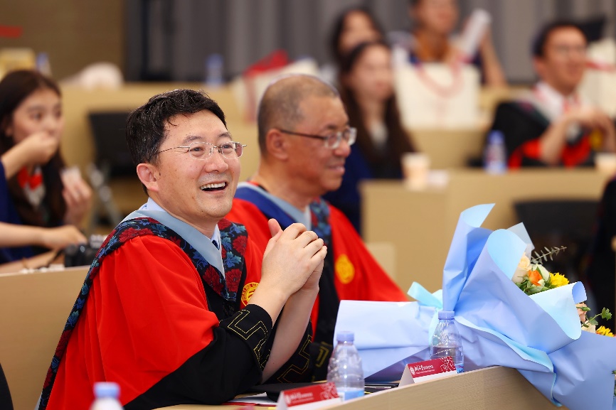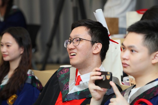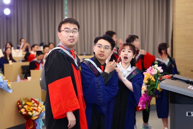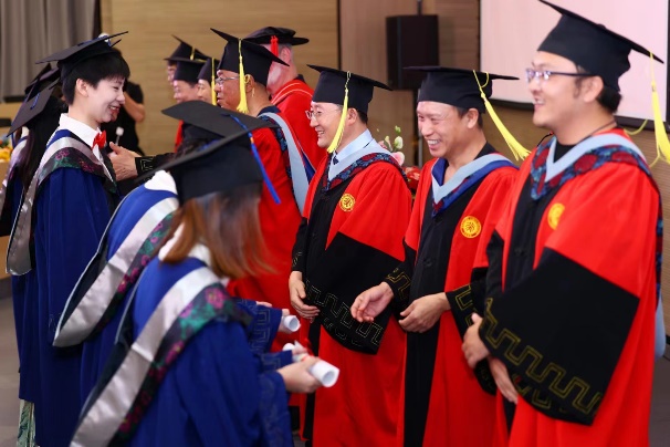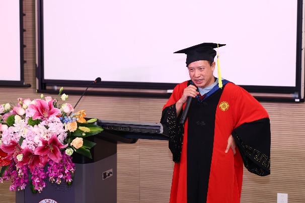 博士班班主任仝德老师在祝贺同学们顺利毕业后,希望同学们在当前被人工智能席卷的时代里要坚持温暖且有情绪价值的人:在追求高指标去“卷”事业的同时也要有更大的胸怀与格局,尽量放慢去“卷”的脚步,把更多精力放在关心身边的人上,投入感情去和身边的人一起分享情绪价值。